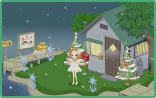 仮想タウンとお庭に雪が降る♪