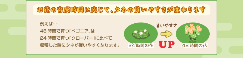 ※収穫時にタネが貰える確率はランダムです。必ず貰えるわけではありません。