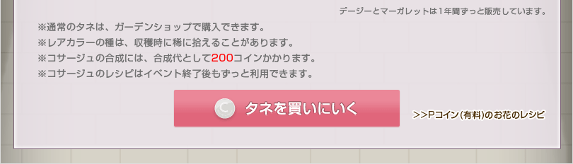 タネを買いにいく Pコイン(有料)のお花のレシピ