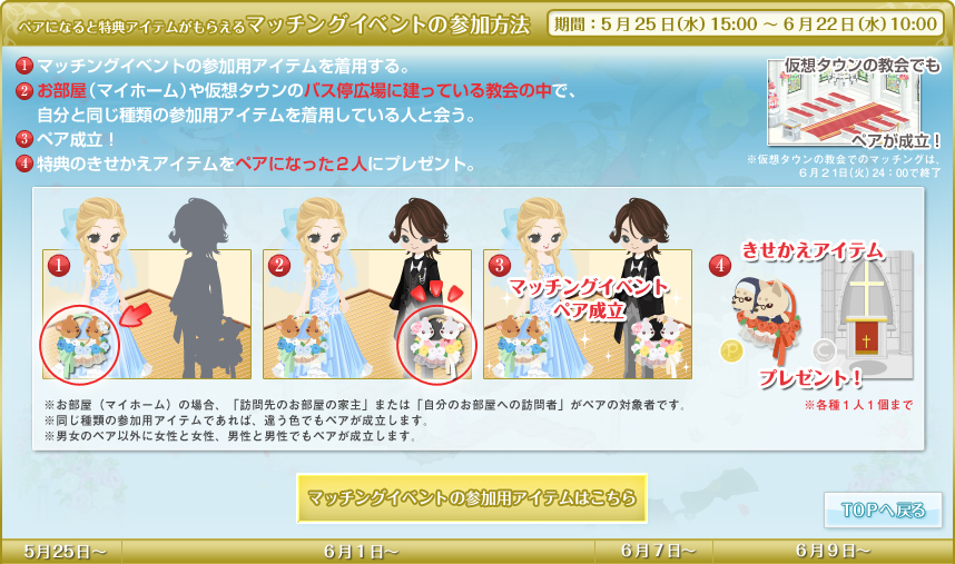 マッチングイベントの参加用アイテムはこちら トップへ戻る