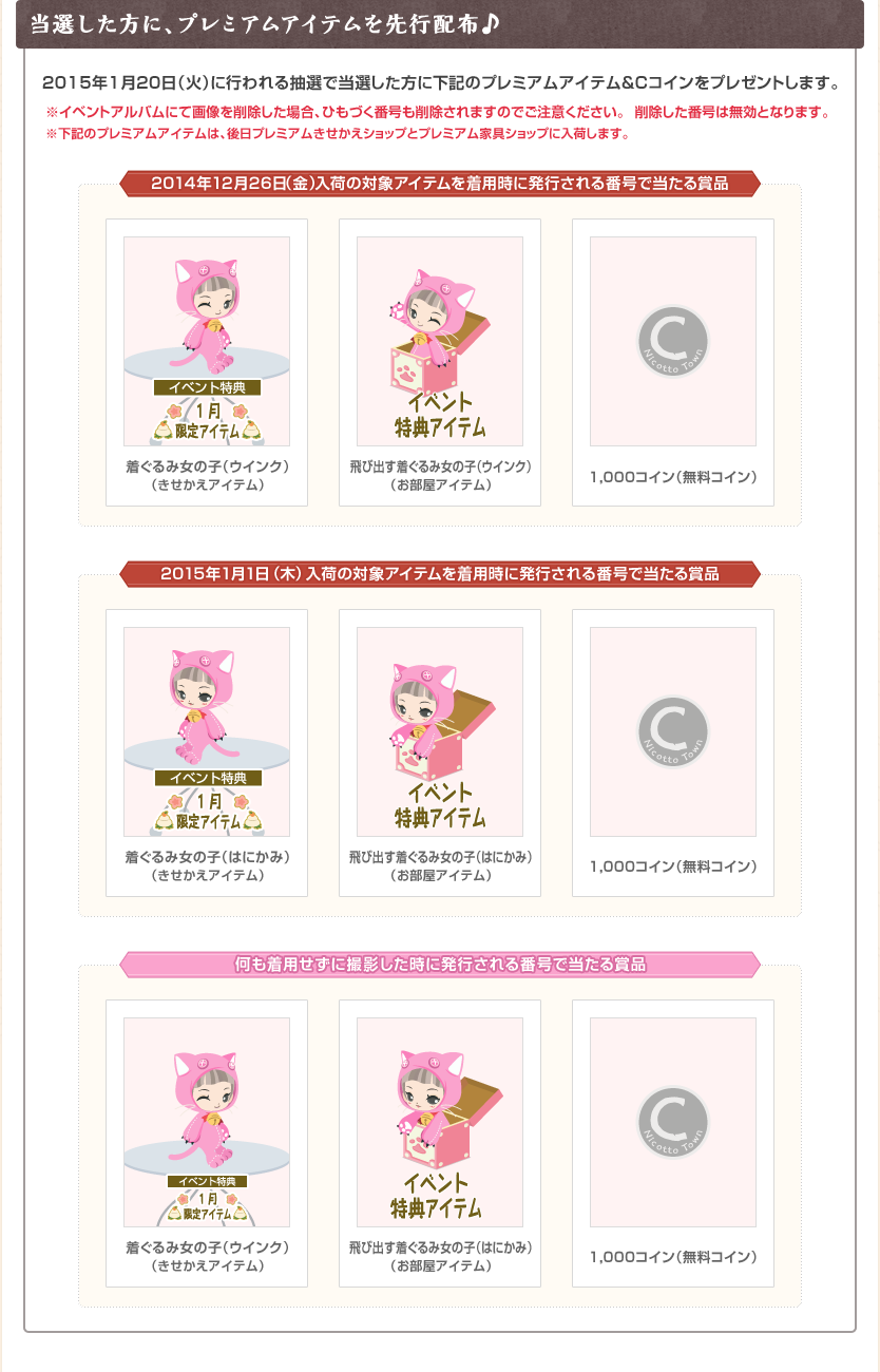 ※賞品の「きせかえアイテム」は、プレゼント・フリマに利用できます。