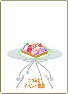 イベント期間内に、通常サイズの「華やかトースト~苺と春風仕立て~」を 2000個販売すると、対象料理のきせかえアイテムがもらえます。