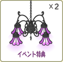 イベント期間内に、通常サイズの「不思議な夜のにぎやかプレート」を 2000個販売すると、対象料理のきせかえアイテムがもらえます。