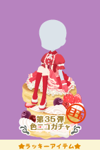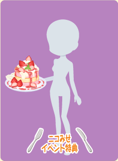 色ニコガチャ第35弾のアイテム(全11点)を着用して、イベント限定料理 「幸せとけあう苺ホイップパンケーキ」を作ると、完成数がアップ。 着用アイテム1点につき、作れる数が20%上昇します。(※最大100%)