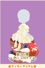 色ニコガチャ第35弾のラッキーアイテム(全2種)を着用して料理を作ると、 お店を飾る「内装アイテム(全2種)」がもらえます♪