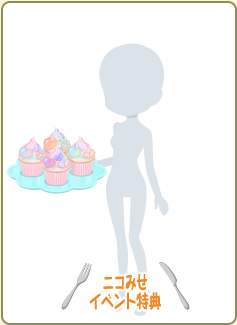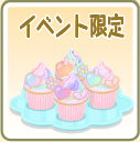 イベント期間内に、通常サイズの「心ときめくゆめかわカップケーキ」を 2000個販売すると、対象料理のきせかえアイテムがもらえます。