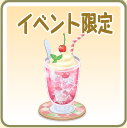 イベント期間内に、通常サイズの「シュワッと弾けるチェリーサイダー」を 2000個販売すると、対象料理のきせかえアイテムがもらえます。