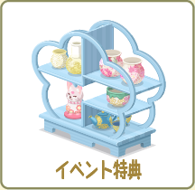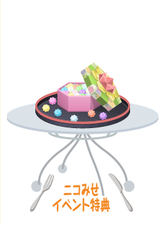 イベント期間内に、通常サイズの「ゆめいろ金平糖」を 2000個販売すると、対象料理のきせかえアイテムがもらえます。
